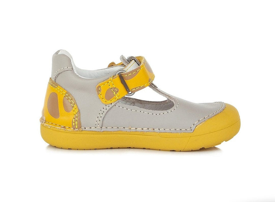 D.D step boys leather sandals in grey/yellow